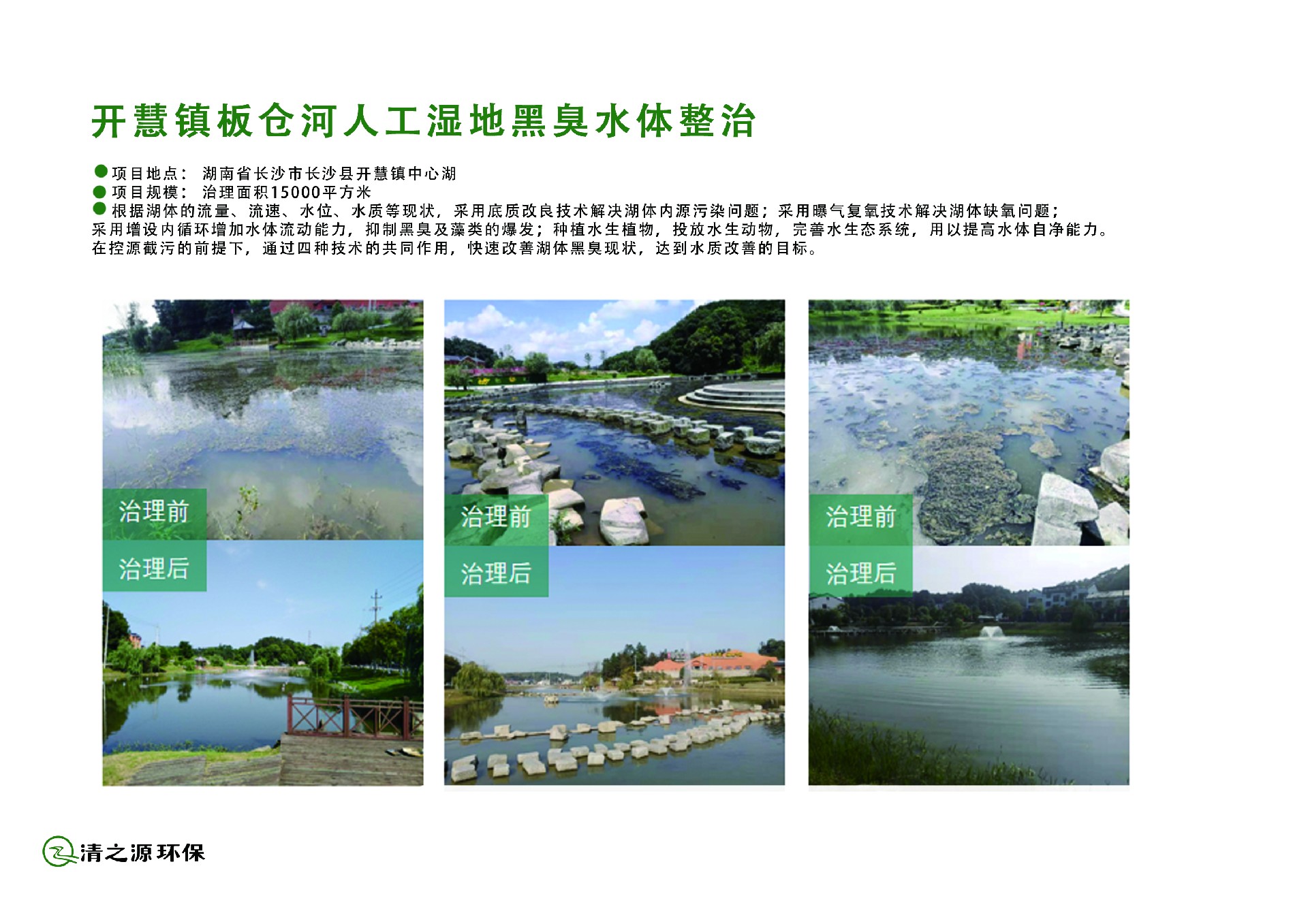 針對黑臭水體這些問題,清之源擁有豐富的經驗,先進的技術,專業的團隊,成熟的設備,能夠針對不同類型的黑臭水體進行科學分析和治理,更有多個成功的實施案例,能夠提供全方位全流程的黑臭水體環境修復一體化整體解決方案。