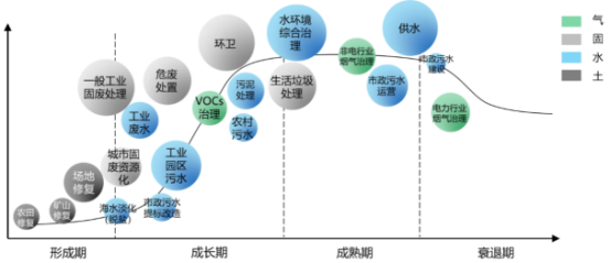 20世紀(jì)90年代的政策治理重點(diǎn)是酸雨控制和SO2治理,環(huán)保產(chǎn)業(yè)開(kāi)始發(fā)軔,相繼有一批大氣污染治理龍頭企業(yè)上市進(jìn)入資本市場(chǎng);隨后是市政給排水和工業(yè)污水處理改革,城市污水處理廠如雨后春筍般建成,促進(jìn)了各大型水務(wù)集團(tuán)的形成;在過(guò)去十年“新農(nóng)村建設(shè)”為導(dǎo)向的時(shí)候,小型集中式污水處理、垃圾分類處置技術(shù)井噴,農(nóng)村環(huán)境連片綜合整治領(lǐng)域一片欣欣向榮;在國(guó)家推進(jìn)流域治理后,黑臭水體治理、重金屬治理、土壤修復(fù)板塊市場(chǎng)爆發(fā)性增長(zhǎng)……