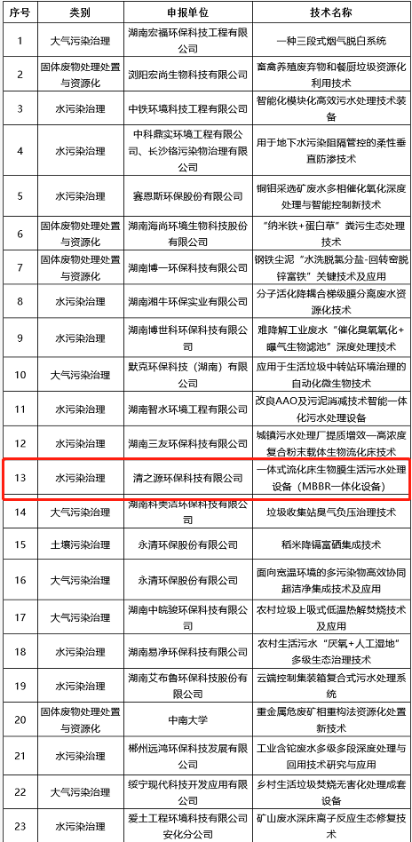 2021年湖南省環(huán)境保護(hù)實(shí)用技術(shù)名錄發(fā)布:清之源環(huán)保榜上有名!